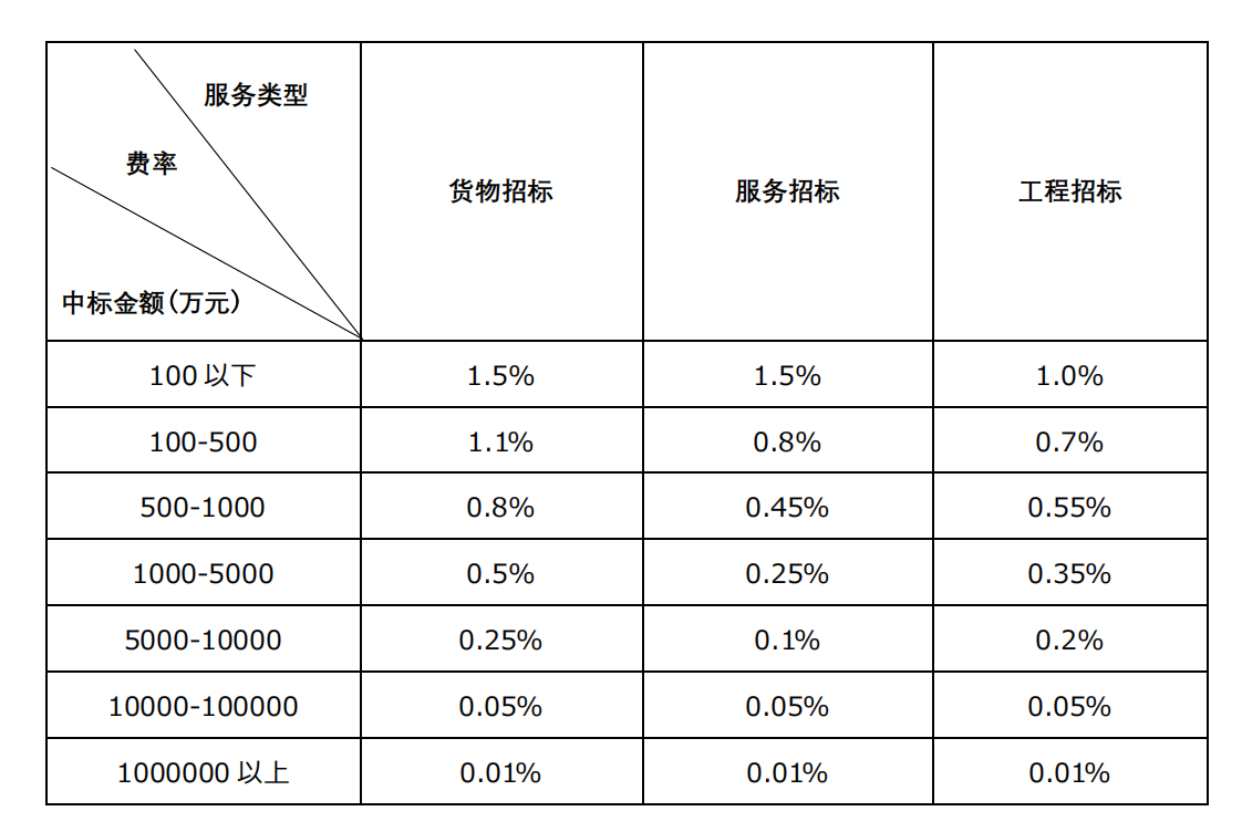 注:1.按本表费率计算的收费为招标代理服务全过程的收费基准价格,单独提供编制招标文件(有 标底的含标底)服务的,可按规定标准的 30%计收。